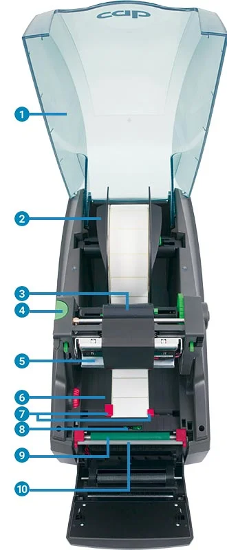 Las etiquetas y los ribbons se insertan cómodamente desde delante. El guiado de etiqueta está centrado y hace innecesarios los ajustes.